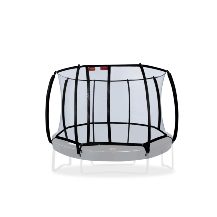 Dit rechthoekige veiligheidsnet is voor de opbouw, InGround en FlatLevel trampoline set 12. Het veiligheidsnet heeft gebogen palen en is voor trampolines met een diameter van 365 cm.