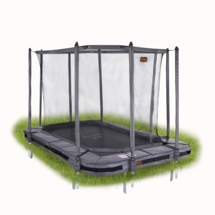 Het grijze, rechthoekige trampoline veiligheidsnet AVGR-238-SN-I is een prachtig veiligheidsnet voor de InGround PRO-LINE trampoline met de afmetingen 380 x 255 cm. Het veiligheidsnet is eenvoudig in elkaar te zetten en heeft een zeer stabiel frame.