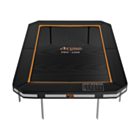 Deze InGround trampoline van 340 x 240 x 20 cm is voorzien van een Royal Class veiligheidsnet, een zwarte trampoline rand, dubbel gegalvaniseerde veren en een soepele springmat. De stevige rand van de trampoline dekt de veren volledig af en blijft daarnaast netjes liggen bij iedere sprong. Bovendien heeft de zwarte rand een oranje bies, zodat de deze gemakkelijk te onderscheiden is van de springmat. De zijkant (skirt) van het randkussen valt volledig langs de open ruimte (20 cm) heen. Het randkussen is ook voorzien van luchtroosters voor een optimaal springcomfort.