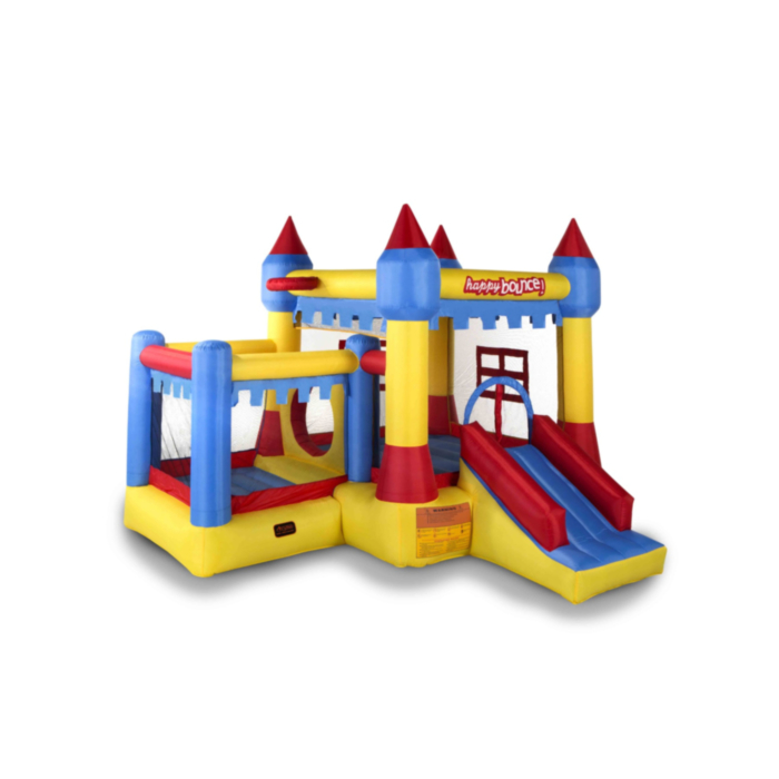 Het New Castle 5-1 springkussen is een ruim springkussen met een ballenbak (inclusief ballen), glijbaan én basketbalnet. De afmeting van het springkussen is 320 x 300 x 250 cm. Het springkussen wordt standaard geleverd inclusief blower, opbergtas, haringen en een reparatieset. De blower zorgt ervoor dat het springkussen gemakkelijk binnen enkele minuten staat. Het springkussen is dubbel gestikt en netjes afgewerkt. Daarnaast zit er rondom het springkussen een stevig zwart nylon net.